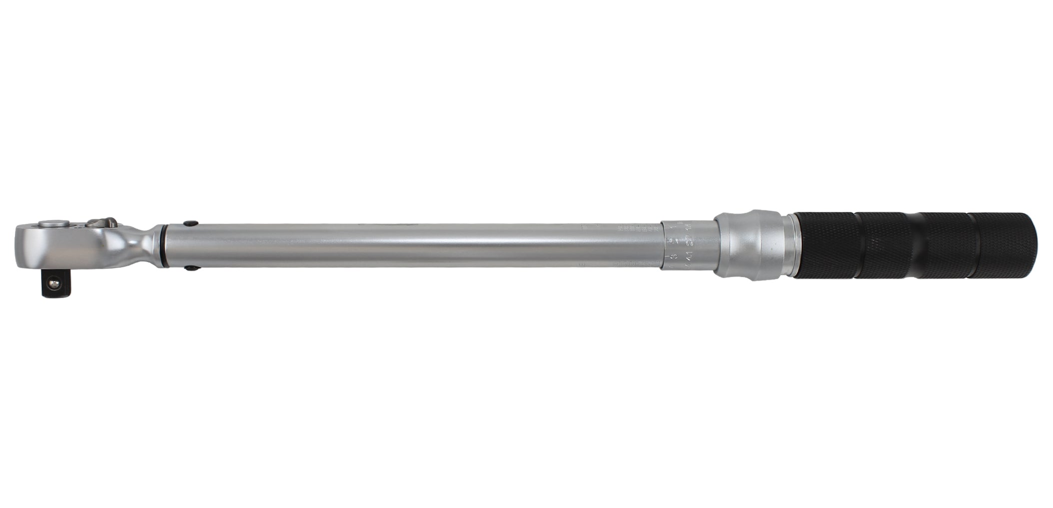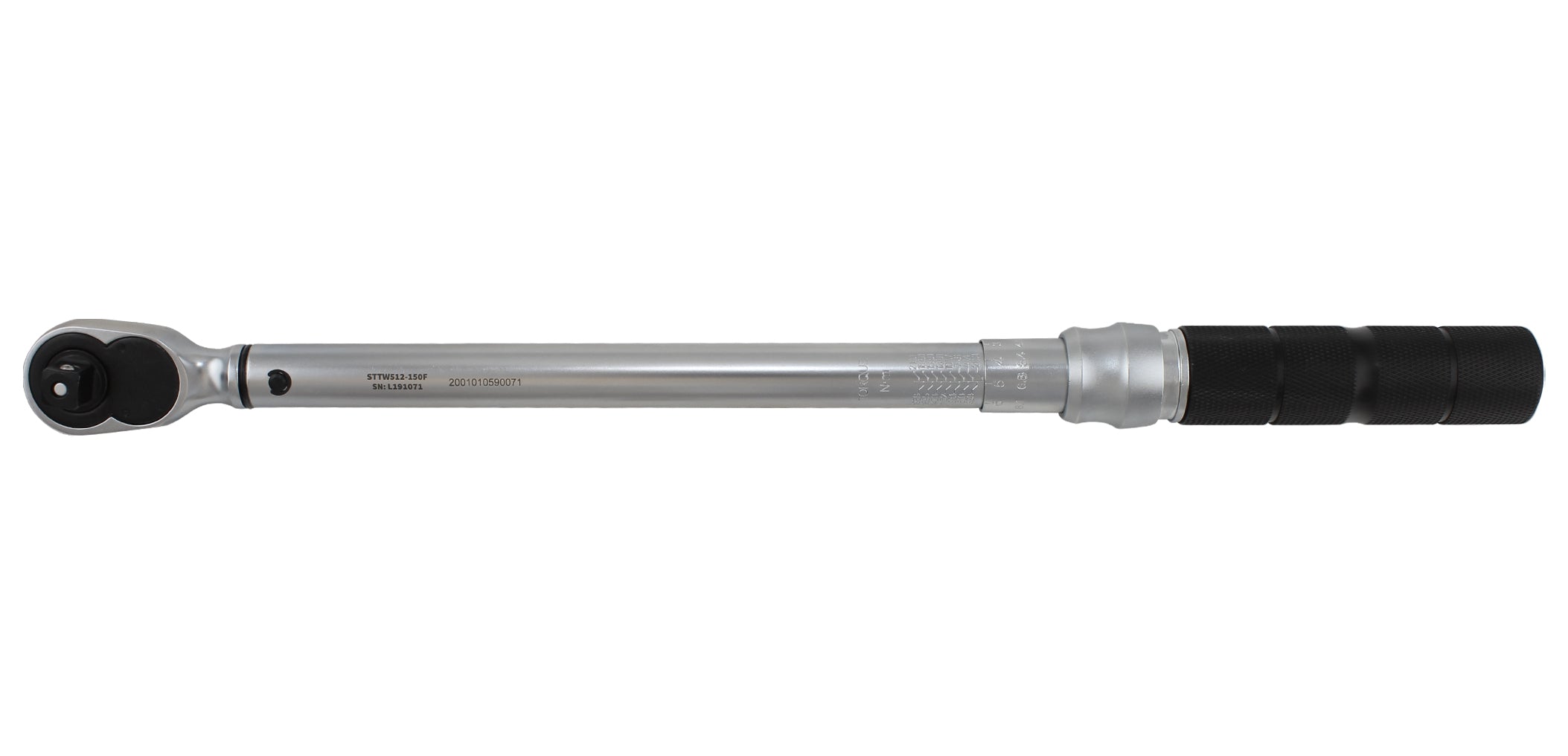 The Seattle Tool 1/2" Torque Wrench - 10-150 ft-lb is a versatile click-type torque wrench suitable for a wide variety of jobs in the shop. A reversible, 48-teeth ratchet head allows for use in both clockwise and counter-clockwise directions. Push-button quick release makes changing sockets easy while securing sockets firmly. Click-type design is reliable and intuitive to use while providing torque accuracy of ±4%. Measurement markings feature both ft-lb and Nm scales for convenient torque setting in both units. The measurement markings are also stamped to ensure a lifetime of legibility. The handle is machine-knurled to improve grip during handling and use. Finished in scratch, chip and corrosion resistant satin nickel-chrome plating.