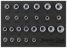 The Seattle Tool 1/4” Socket Set is a complete solution featuring a full complement of premium 1/4” drive sockets in both metric and SAE sizes. Exceeding international standards, the sockets are designed to grip fasteners along their edges to increase grip and prevent rounding. Forged, machined and precision heat treated for strength and durability to tackle tough jobs. The diamond-pattern knurling on every socket makes them easy to grip and control. Stamped markings provide clear and permanent legibility for the lifetime of the socket. Finished in scratch, chip and corrosion resistant satin nickel-chrome plating. PE+EVA foam shadow tray keeps the tools organized and secured.