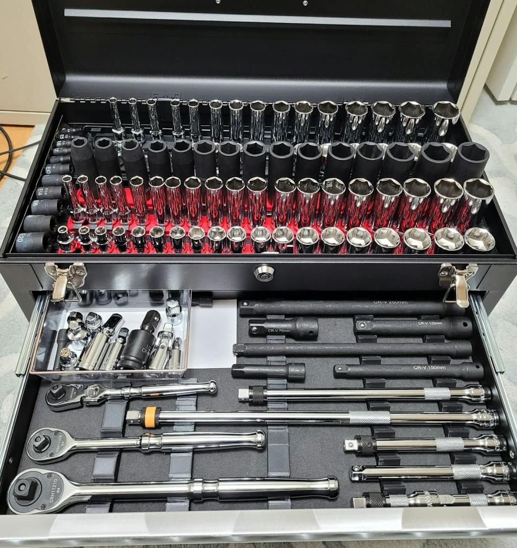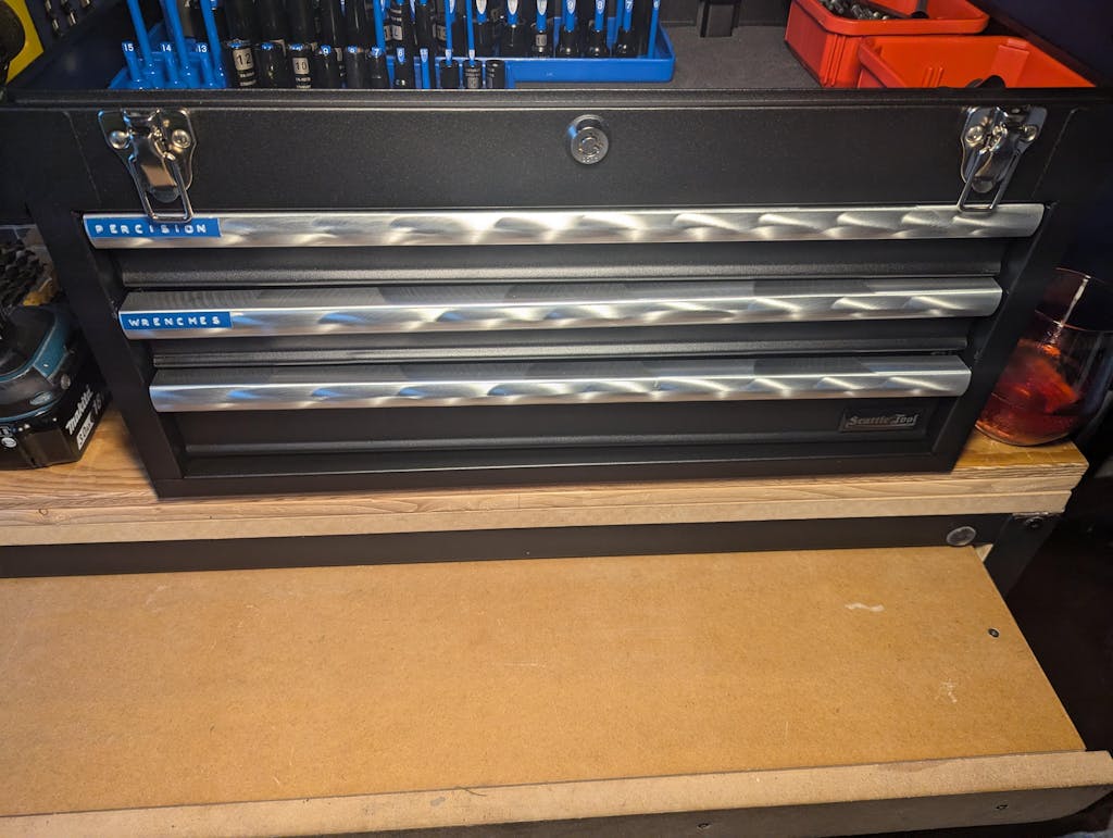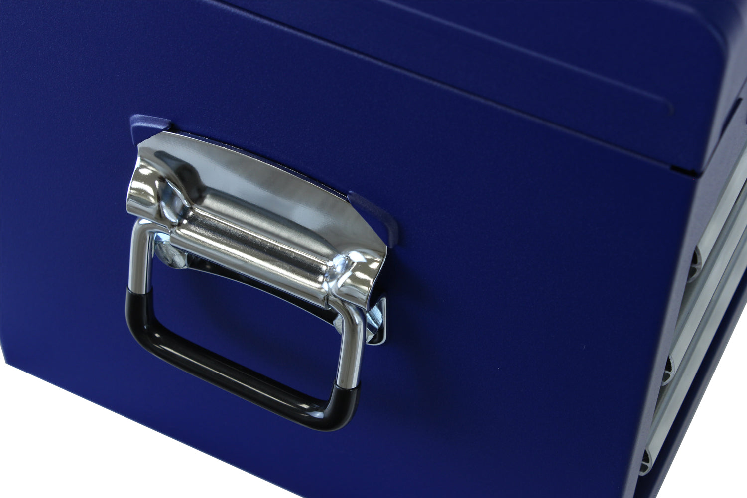 The Seattle Tool 20” Tool Chest is a tough and portable tool chest suitable for use in the shop, packed out to mobile jobs and out on adventures. The top lid compartment and three drawers allow for versatile storage for a wide range of tools, parts and supplies. Premium ball bearing slides ensure smooth and sturdy action. Reinforced chest lid and double-wall design result in a heavy duty box with lasting durability. Constructed from cold rolled steel with scratch, grease and solvent resistant powder coating. Secured with a tubular lock and keys.