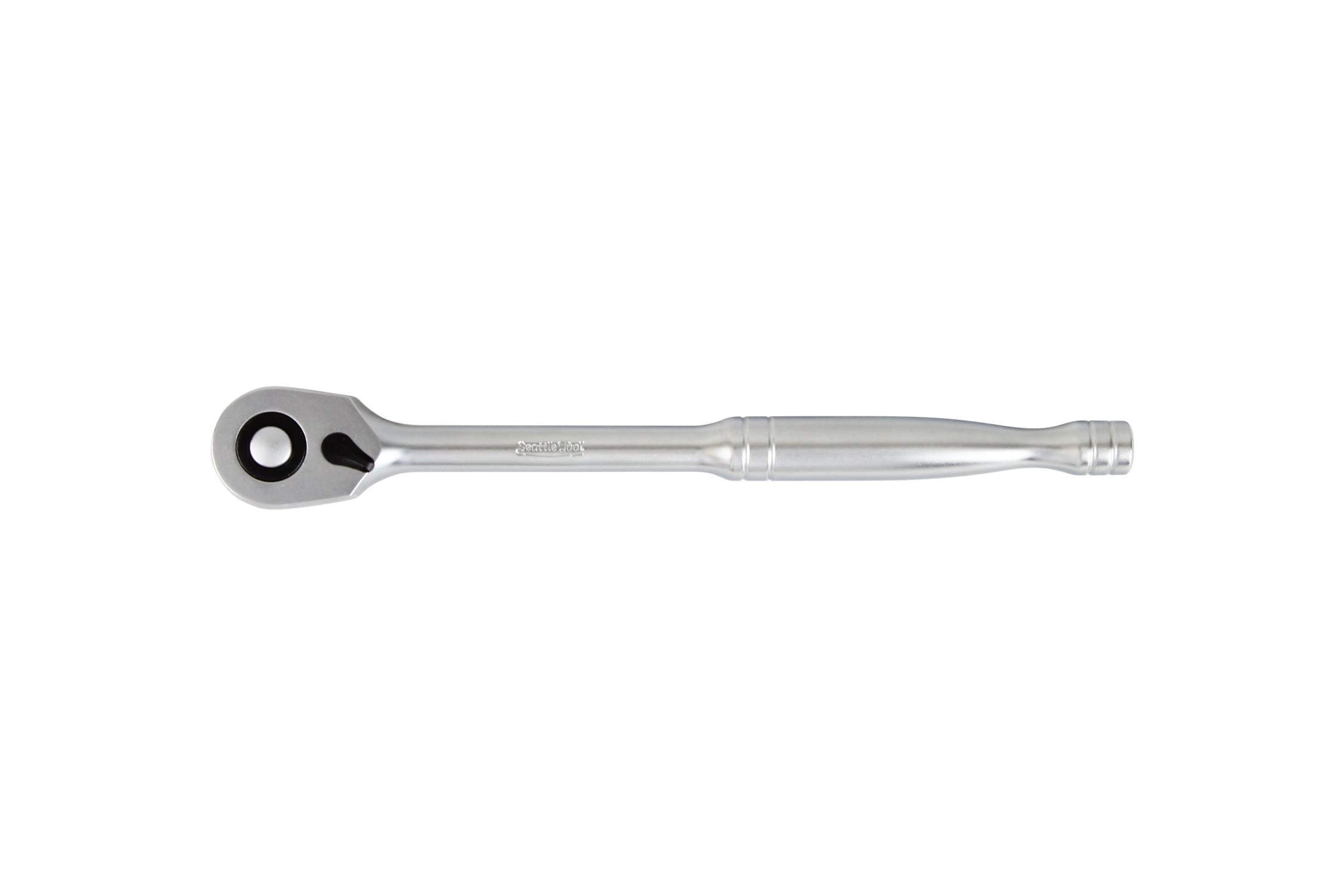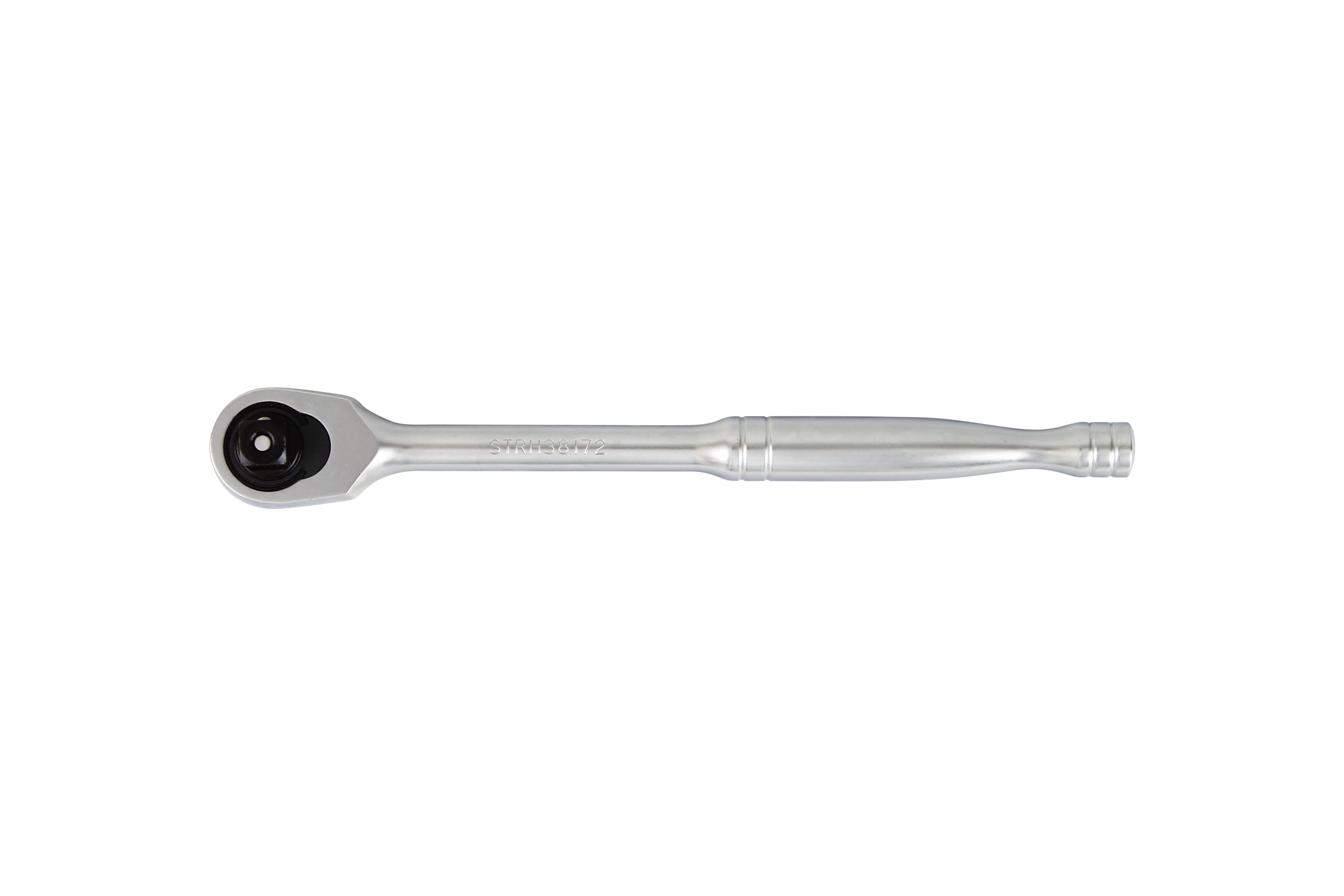 The Seattle Tool ⅜” Ratchet is a compact and low profile ratchet for turning sockets and bit sockets in tight spaces. The ratchet features a smooth and durable 72-teeth reversible mechanism that provides a low, 5-degree swing arc for ratcheting in tight spaces. A compact and low profile teardrop head design improves accessibility to fasteners. Push-button quick release makes changing sockets easy while securing sockets firmly. The body is forged, machined and precision heat treated for strength and durability to tackle tough jobs. Finished in scratch, chip and corrosion resistant satin nickel-chrome plating.